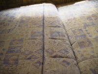 さすがに4年経過すると、シートは汚れてくる。 写真はお座敷モードで反転しているが、通常モードにすると汚れているというか、白茶けている。 ファスナーがあり外せるので、一度クリーニングしなくては。 |