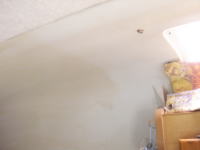 2シーズン目頃から天井に数箇所ポツポツと黒い染みが出てきた。 増殖する気配はなくそのままにしているがカビだと思われるので、カビキラー等で処理をしてきれいにしなくては。 天井最後部の染みは明らかに雨漏りのようだ。 いつかの豪雨の後、暫くしてから気がついたが、その後は発生していないようだ。 染み取りの方法と原因を調べなくてはと思いながら進んでいない。 |