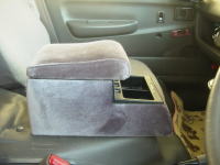 タウンエーストラック(キャンピングカー特装車)は運転席と助手席の2シート構成でキャビンへの移動が便利な反面、長距離などでやはり肘掛が欲しくなる。 ホームセンターで見つけて、両面テープで固定して利用している。肘掛によって長距離も楽になり、ドリンクホルダー、小物の収納などにも便利である。 幅がないので、ウオークスルー時も特に不便はない。 ロックが移動中にアゴ掛けで使ったりもしている。 |