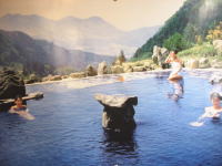 | 露天風呂(男湯) | 内風呂(男湯) | 晴れるとこんな感じ(店内ポスター) |