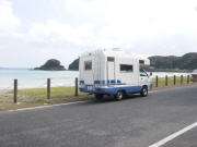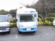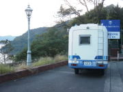 | さすがにキャンカーが多い 8:00起床。渋滞疲れか、寝起きが悪い。ミントによると「6:00頃にはざっと20台以上のキャンピングカーとトラベルトレーラ」があったとのこと。さすが観光地と思いながら、「渋滞だけは避けたいね」となぜか意見が合う二人だった。昨夜、日程を決める予定だったが、時間が無かったので、コーヒーを飲みながら話し合う。結局、下田までいってブランチということになり、ゆっくりもう1泊てな感じでくつろいでいるキャンカーを後に9:10頃に出発。 |