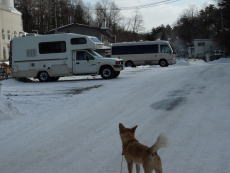 | 5年ぶりに正月を草津で ここ数年箱根駅伝に熱中しており、リビングでテレビ中継を観るのが正月行事になっていた。箱根駅伝に飽きたわけではないが、たまにはラジオ観戦もイイカモ。(予定停泊地は地上波の受信状態が良くない) 慣れた道でも楽しいドライブ というわけで行き慣れた標準パターン(下道→関越東松山→関越渋川伊香保→下道)で草津へ向かう。自宅出発は12:00で途中ゆっくりと昼食をとり、ノンビリと高速を巡航。大晦日の午後という事もあり関越も比較的すいている。定番の吾妻ショッピングセンターで食材と燃料(人間用)を沢山買込み、JBに詰め込む。冷蔵庫も一杯で食材の置場に困るが、バンクベット奥や下部収納に何とか詰め込む。真冬とは言えFFヒーターで車内は23℃程度に維持しているので、生ものはやはり気をつかう。 19:00に草津に到着し、ロックの散歩、入浴を済ませて。外は乾雪が舞っているが車内はポカポカだ。 今宵は一杯いきながら年越しダ!! |