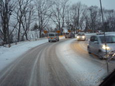 | 草津道路は雪でノロノロ | 今回唯一の外食 | おやつを買いノンストップだ |