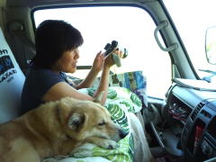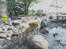 | 小浜市 前日小浜市内にに食材を買出しに行っていたので、街の位置関係は大体把握したあった。OBAMAのみやげ物が沢山あると思っていたが、まんじゅうとクッキー位だった。9:00前で開いていたのは小浜フィッシャーマンズワークだけだったので、そこでおすしの朝食を取る事にした。ボタンえびのすしは超美味だった。 若狭瓜割りの滝 道の駅?で見つけた観光ガイドで滝好きのミントが見つけた。滝というより山の湧き水という感じだが、とにかく冷たくて美味しい。水にうるさい我家的にもこれは美味しい。売店にあった葛餅が素朴でこれまた美味しかった。ここは涼しくて水浴びも出来てロックは大喜びダ。 三方五湖経由で越前温泉へ 三方五湖有料道路を目指す。料金は半額の\500-だった。駐車場からリフトorゴンドラでロックも頂上までいけるが吼えそうなのでやめた。 廃墟の水仙ランド パンフレットに無料とあった水仙ランドに行った。廃墟寸前でひどいところだった。管理人がキャンピングカーを見てここで泊まるのかなどと無礼なことを言っていた。廃墟じゃ停泊しないヨ。気味悪くって!!(怒)。 |