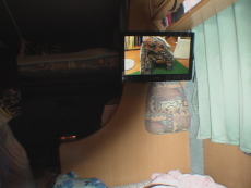 | ロックお気に入りのアゴ枕 | 蛇口嫌いのロックも飲んだ 暑い!! | 指差し確認?? |