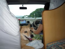 | やや飽き気味のロック君 | 上信越道の1車線渋滞始まる | 諏訪湖SAハイウェイ温泉 |