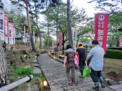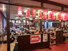 | 芦野温泉エントランス | GWなので座る場所もない混雑 |